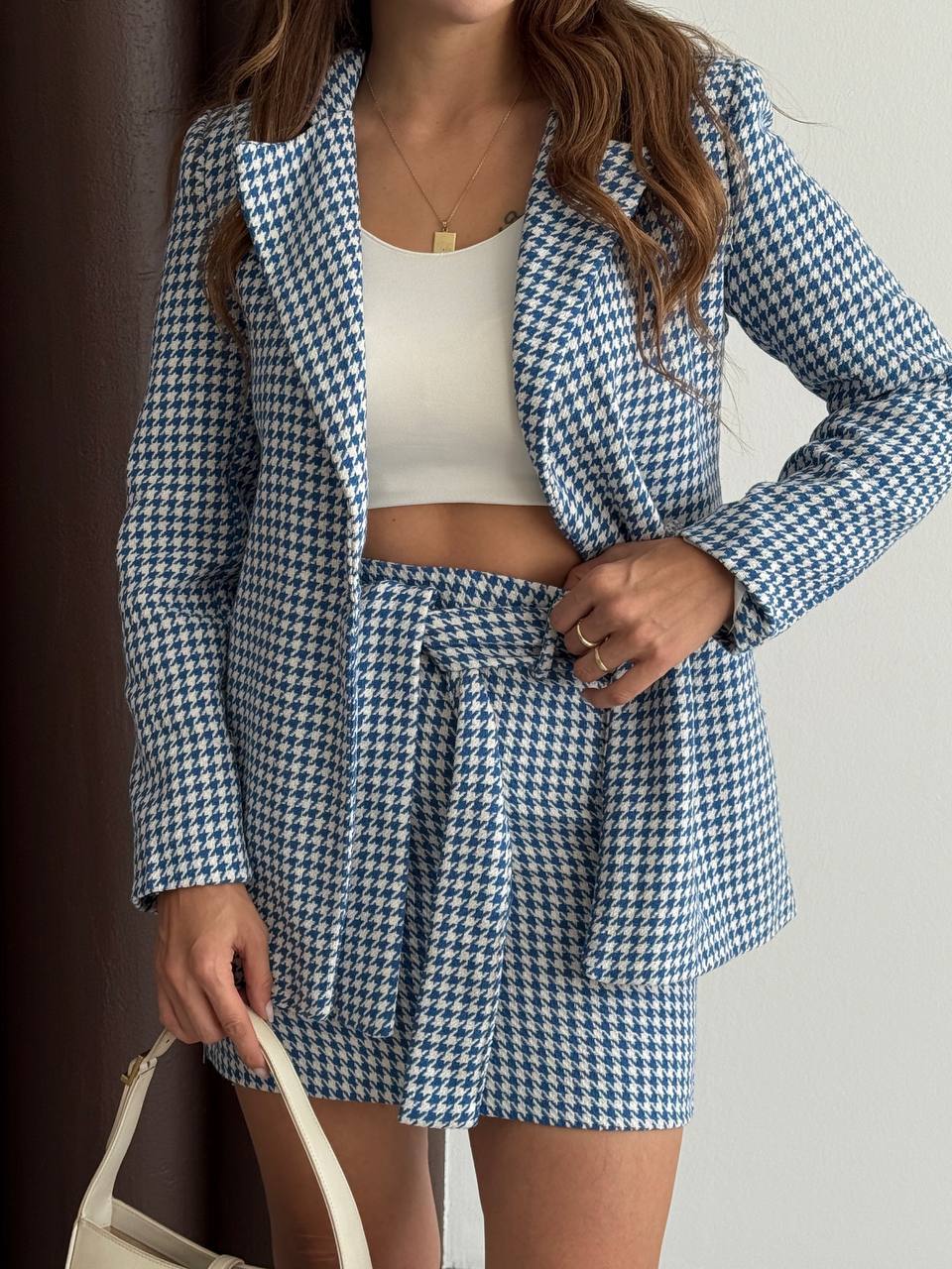 Klasik ve zarif çizgileriyle öne çıkan Model H034 Kazayağı Takım, sezonun en şık kombinlerinden biri. Astarlı ve vatkalı ceketiyle güçlü bir siluet sunarken, kemer detaylı eteğiyle görünümü kusursuzca tamamlar. Şık dokusu ve kaliteli işçiliğiyle hem ofis hem özel davetlerde stilinizi ön plana çıkarır.